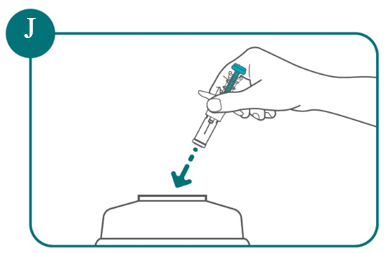Legg den brukte ferdigfylte sprøyten i en avfallsbeholder for skarpe gjenstander umiddelbart etter bruk (se figur J).