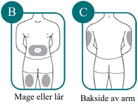 Ikke injiser på steder der huden er øm, har blåmerker, er rød, flassende, hard, eller på områder med arr eller strekkmerker.