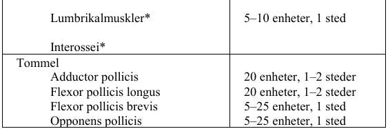 a1 IM injeksjonssted = 0,1 ml = 5 enheter BOTOX