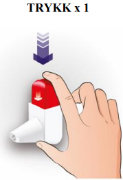 Dosetelleren viser hvor mange doser som er igjen. Telleren flytter seg for hvert femte trykk. Når dosetellereren begynner å bli rød, er det 20 doser igjen.
