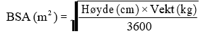 Før tilberedning av infusjonen beregnes kroppsoverflaten (BSA) til pasienten ved å bruke følgende formel: (Mostellers2 formel)