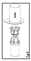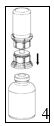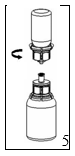 5. Med en hånd rundt pulverdelen av Mix2Vial settet og den andre hånden rundt hetteglasset det har vært væske i, skrus settet fra hverandre mot klokken i to deler. Kast hetteglasset det har vært væske i med den blå Mix2Vial adapteren festet til. |