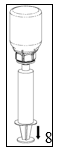 6. Rotér forsiktig pulverhetteglasset med den gjennomsiktige adapteren festet, til alt pulveret er fullstendig oppløst. Må ikke rystes.
