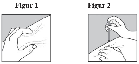 Klyp forsiktig huden opp mellom tommelen og pekefingeren (Figur 1).