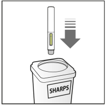 Kast den brukte pennen i en avfallsbeholder for skarpe gjenstander (dvs. en beholder som kan lukkes og ikke kan stikkes hull i, eller lignende).