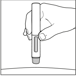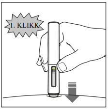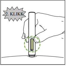 Press pennen fast mot huden for å starte injeksjonen.