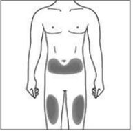 Ikke injiser i områder hvor huden er tynn, skadet, rød, skallete eller fortykket. Unngå områder med arr eller strekkmerker.