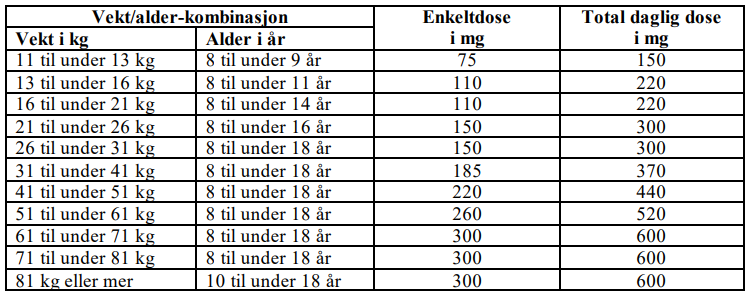 Den anbefalte dosen er 220 mg én gang daglig (tatt som 2 kapsler à 110 mg).