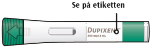 Dette er en ferdigfylt penn til engangsbruk. Den inneholder 300 mg Dupixent for injeksjon under huden (subkutan injeksjon).