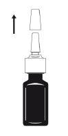 4. Hold flasken rett opp og ned og sett spraytuppen forsiktig inn i et nesebor.