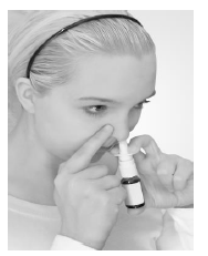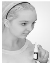 Hold flasken rett opp og ned og sett spraytuppen forsiktig inn i et nesebor.