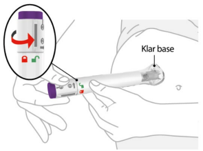 Sv. Noen kan høre et mykt klikk rett før det andre høye klikket. Det er normalt for den ferdigfylte pennen. Ikke fjern den ferdigfylte pennen fra huden før du hører et nytt høyt klikk.