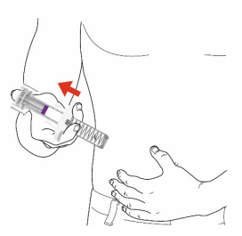 Klem forsiktig sammen en hudfold på injeksjonsstedet (lår eller mage, unntatt 5 cm (2 tommer) rundt navlen, eller på utsiden av overarmen hvis en omsorgsperson setter injeksjonen).