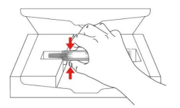 Ta den ferdigfylte Ebglyss-sprøyten ut av pakningen ved å holde på midten av sprøytekammeret.