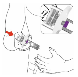 Løft tommelen for å frigjøre stempelstangen til nålen er dekket av sikkerhetsanordningen, og fjern deretter den ferdigfylte sprøyten fra injeksjonsstedet.