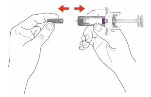 Hold Ebglyss ferdigfylt sprøyte midt på sprøytekammeret med nålen pekende bort fra deg, og ta av nålehetten.