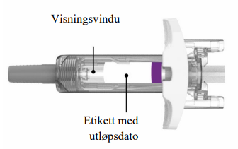 Merk: Du kan forsiktig rotere stempelstangen for å se sprøyteetiketten.