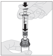 11. Press stempelstangen langsomt inn for å injisere all væsken inn i hetteglasset med ELOCTA.