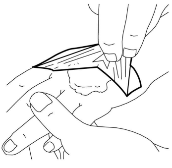 5. Plasser så bandasjen forsiktig over kremen. Ikke spre kremen ut under bandasjen.