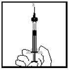 Mens du holder sprøyten oppreist, fjernes eventuelle luftbobler ved forsiktig å presse inn stempelet inntil all luft er fjernet (se figur 16).