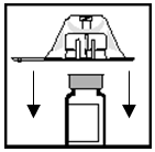 Plassér hetteglassadapteren på toppen av Enbrel-hetteglasset mens den fremdeles er innpakket i plastikk slik at hetteglassadapteren er plassert i midten innenfor den opphevede sirkelen på toppen av hetteglassproppen (se figur 2).
