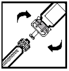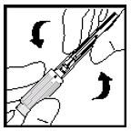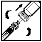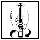Mens du holder glassrøret av sprøyten med én hånd og hetteglassadapteren (ikke hetteglasset) med den andre, fest sprøyten til hetteglassadapteren ved å føre tuppen inn i åpningen og vri med klokken til den sitter fast (se figur 7).