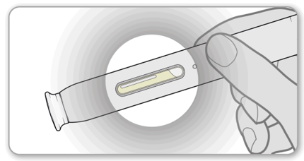 Inspiser legemidlet i pennen ved å se gjennom det klare inspeksjonsvinduet. Oppløsningen skal være klar eller lett blakket, fargeløs til svakt gul eller svakt brun, og kan inneholde små hvite eller nesten gjennomsiktige proteinpartikler. Dette er normalt utseende for Enbrel.