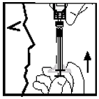 Når det rengjorte hudområdet har tørket, klem og hold det fast med en hånd. Med den andre hånden holdes sprøyten som en blyant.