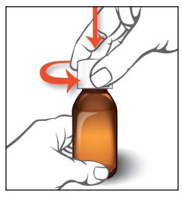 2. Fjern den barnesikrede flaskekorken ved å trykke ned korken samtidig som du skrur korken mot klokken.