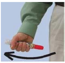 Hold autoinjektoren på midten, aldri i endene. For riktig bruk, se figurene og følg disse trinnene: