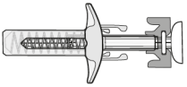 Hold sprøytens fingerflens som vist. Trykk stempelet ned så sakte som mulig slik at stempelhodet når helt inn mellom kanylebeskyttelsesvingene.