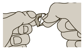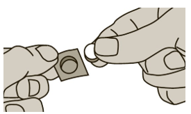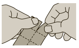 1. Riv av en firkant på blisterpakningen langs de stiplede linjene.
