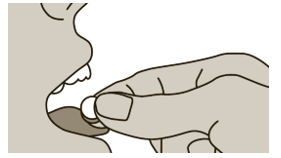 4. Legg tabletten på tungen og lukk munnen. La den ligge der i noen sekunder til den har løst seg opp. Unngå å svelge i løpet av de første 2 minuttene. Ikke spis eller drikk i minst 5 minutter.