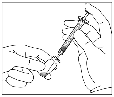 2. Filterkanylen (18 G 5 mikron) som følger med i esken, festes til en 1 ml steril Luer-lock-sprøyte.