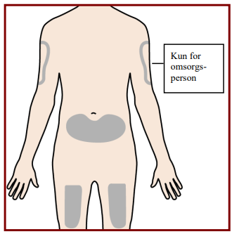 En omsorgsperson kan injisere i overarmen din, låret eller magen. Du skal ikke prøve å injisere deg selv i armen.