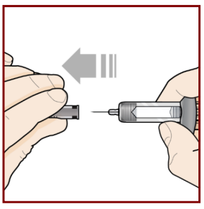 Hold i sprøytekroppen med én hånd og trekk forsiktig kanylehetten av med den andre hånden.