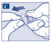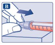 Dra av den indre nålehetten og kast den. Dersom du prøver å sette den på igjen kan du komme til å stikke deg selv eller skade deg på nålen.