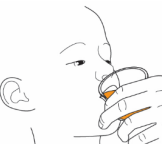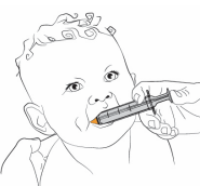 Administrering med oral sprøyte: Plasser enden av den orale sprøyten på innsiden av munnen sånn at tuppen berører kinnet.