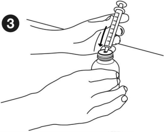 Flaske med 360 ml mikstur, oppløsning, et flaskeadapter, to 3 ml-sprøyter med 0,1 ml-graderinger og to 6 ml-sprøyter med 0,2 ml-graderinger.