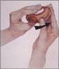 Hold med en hånd rundt beskyttelseslokket med tommelgrepet mot deg.