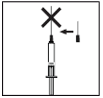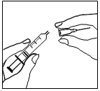 1. Ta hetten av den ferdigfylte sprøyten, og fest rekonstitueringsnålen (lang nål) til sprøyten.