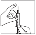 Fjern nålens beskyttelseshette. Hold sprøyten med nålen oppover og slå forsiktig på siden av sprøyten for å presse eventuelle luftbobler til toppen.