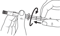 2. Skru stempelet på sprøyten ved å dreie det med urviseren