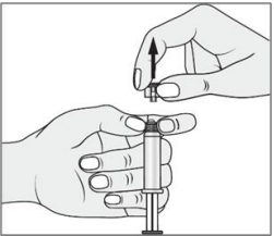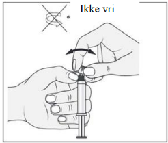 Beskyttelseshetten fjernes fra den ferdigfylte sprøyten umiddelbart før bruk.