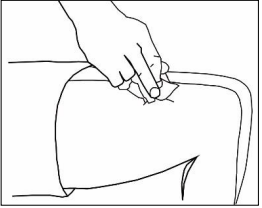 Ta en sprøyte fra pakningen ved å ta tak i kroppen til sprøyten. Ikke ta på stempelstangen på sprøyten.