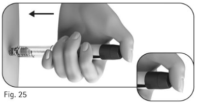 5.2 Plasser tommelen i midten av doseinnstillingsknappen. Trykk doseinnstillingsknappen sakte helt inn og hold den inne for å fullføre hele injeksjon (figur 25).
