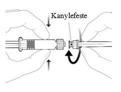 Fest kanylen til sprøyten ved å koble den til luer lock-adapteret og drei en kvart omdreining med klokken til du kjenner at den låses.