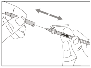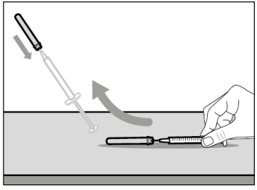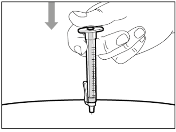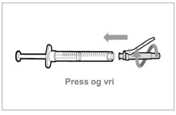 Hold sprøyten med kanylen pekende oppover og press forsiktig sprøytestempelet til din forskrevne dose.