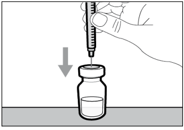Med kanylen pekende oppover, injiser luften fra sprøyten over legemidlet.