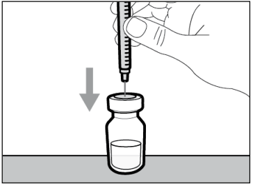 Merk: Sørg for at du har nok legemiddel i sprøyten for å nå dosen din før du går videre til de neste stegene. Hvis du ikke klarer å nå alt innholdet i hetteglasset, vend hetteglasset riktig vei slik at du kan trekke opp resterende mengde legemiddel.
